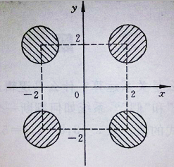 有4个圆塔,圆心分别是(2,2)、(-2,2)、(-2,-2)、(2,-2),圆半径为1。这4个塔的高度为10m,塔以外无建筑物。今输入任一点的坐标,求该点的建筑物高度(塔外的高度为0)。