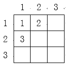接下来,标记比1,1格大1的数字的四周的单元格,也就是标记值为2的单元格四周的单元格,标记结果如下: