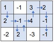 按上述走法,取到的数之和为 1 + 2 + (-1) + 4 + 3 + 2 + (-1) + (-1) = 9,可以证明为最大值。