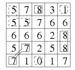 给定一个 n×n 的网格状地图,每个方格 (i,j)有一个高度 wij 。如果两个方格有公共顶点,则它们是相邻的。