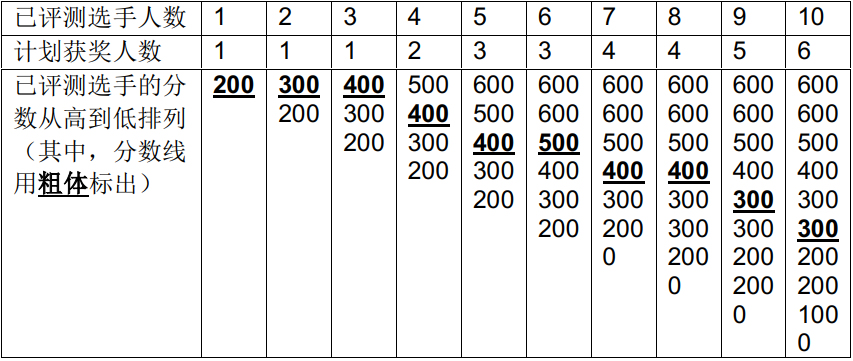 max(x, y) 表示 x 和 y 中较大的数。如有选手成绩相同,则所有成绩并列的选手都能获奖,因此实际获奖人数可能比计划中多。