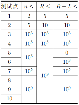 对于所有数据,保证 2 ≤ nLR ≤ 109。