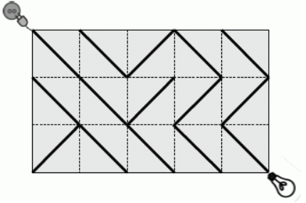 A power source is connected to the top left corner of the plate. A lamp is connected to the bottom right corner of the plate. The lamp is on only if there is a path of wires connecting power source to lamp. In order to switch the lamp on, any number of tiles can be turned by 90° (in both directions).